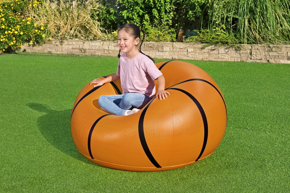 Throw a sports-themed party, play video games with friends or relax in a bedroom on this comfortable Bestway Beanless Basketball Chair. The fun design is perfect for boys and girls who love basketball or sports in general. Suitable for indoor or outdoor use, this chair looks great at the beach, in the backyard or in your kids’ room.