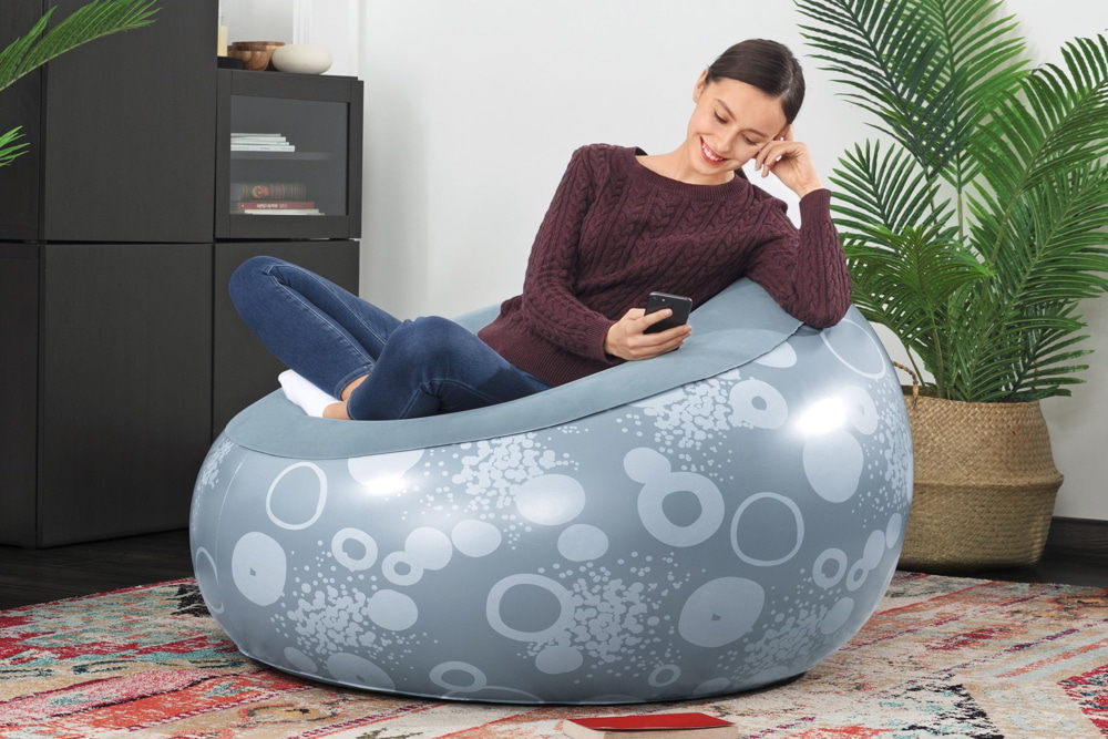 The Inflate-a-Chair is easy to set up, takes up minimal storage space and above all, FUN! Featuring a sturdy coil beam construction and a comfortable sitting surface, this air chair is perfect for when guests come over or as furniture for your game room. It’s also suitable for outdoor use. Chill, sit back and relax on the Bestway Inflate-a-Chair. Available in three awesome colours!
