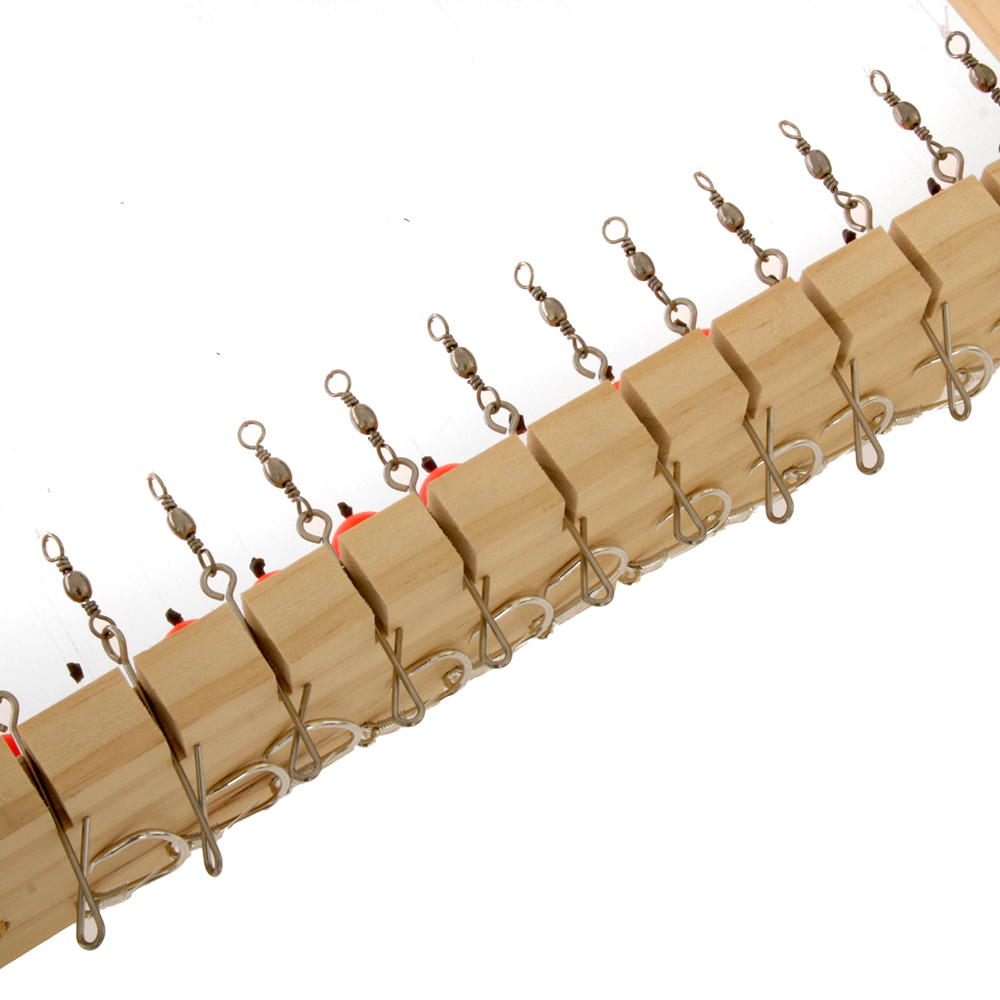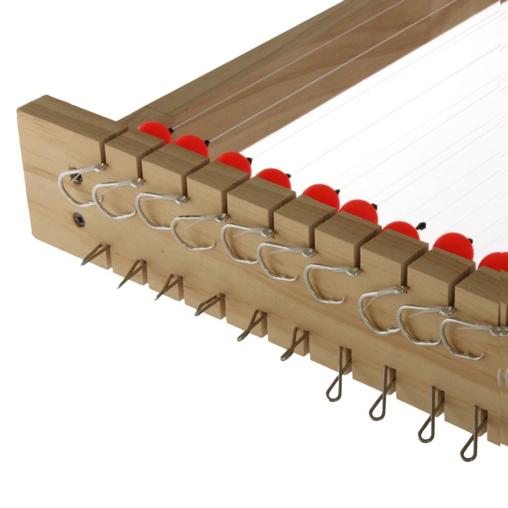 Rig your longline using Bite Longline Trace Board with Floating Traces to get the best results from your day’s fishing. Each trace equipped with a sharp longline hook, and longline clips with swivel to minimise kinks and twists in your line. These traces are neatly organised on a wooden trace board to keep them under tension, tangle-free and ready to deploy.
