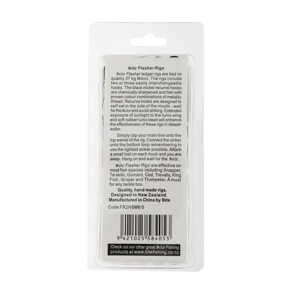 The Snapper Slammer Flasher Rig is incredibly effective on Snapper, Kingfish, Tarakihi, and many of your favourite fish. With a brilliant colour pattern, this rig is irresistible to your targets. It features soft rubber beads, lumo wings, and sharp recurve hooks that are designed to hook fish better. The lumo wings and beads attract more fish by reflecting light, especially useful when fishing in deep water. Baiting up the Snapper Slammer Flasher Rig will have you luring in the big ones.